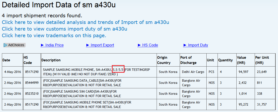 در سه شنبه ی گذشته 4 گوشی دیگر با شماره مدل SM-A430U جهت انجام تست های مختلف وارد هند شده است و این بار Zaubia اطلاعات بیشتری از جمله صفحه نمایش 5.5 اینچی این گوشی را نیز در اختیار ما قرار داده است و همچنین ارزش هر دستگاه نیز با مقداری کاهش به 355.9 دلار رسیده است. اطلاعات منتشر شده مانند فاش سازی اطلاعات دیگر گوشی های هوشمند واضح نیست اما تا زمان انتشار خبرهای دیگر از این گوشی باید صبر کرد و دید که دیگر مشخصات فنی این گوشی به چه شکل خواهد بود.