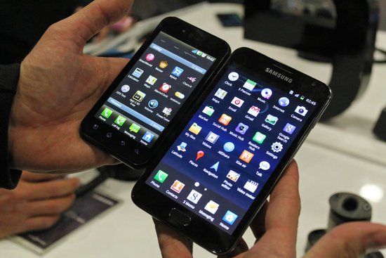 گوشی Galaxy Note در کنار گوشی چهار اینچی LG Optimus Black