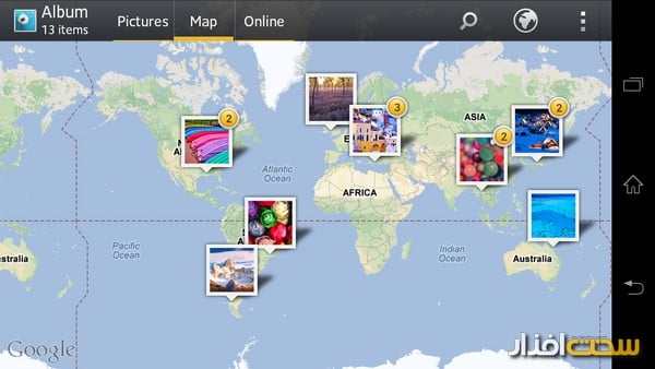 نرمافزار Album نیز جایگزین نرمافزار استاندارد نمایش عکس و فیلم شده و میتواند با خواندن اطلاعات Geo Tagging، محل عکسهای گرفتهشده روی نقشه را نیز نشان دهد.