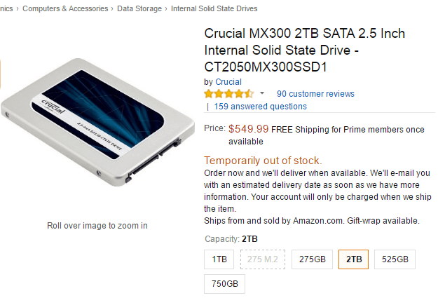 بعد از تولید اولین حافظه های فلش، افزایش ظرفیت و در نتیجه کاهش قیمت آنها با تولید انبوه به مرور رقبای قدرتمند و پر سرعت SSD سعی بر جایگزینی هارد های مکانیکی در دنیای کامپیوتر دارند. همان طور که که میدانید همچنان SSD ها با تمامی مزیت هایشان یک مشکل عمده دارند و آن هم قیمت بسیار بالا و سرسام آورشان در برابر حجم ارائه شدهبه کاربر می باشد. حال به نقل از وبسایت آمازون SSD جدیدcrucial MX300 با ظرفیت 2 ترابایت به زودی با قیمت رقابتی 550 دلار معرفی خواهد شد.