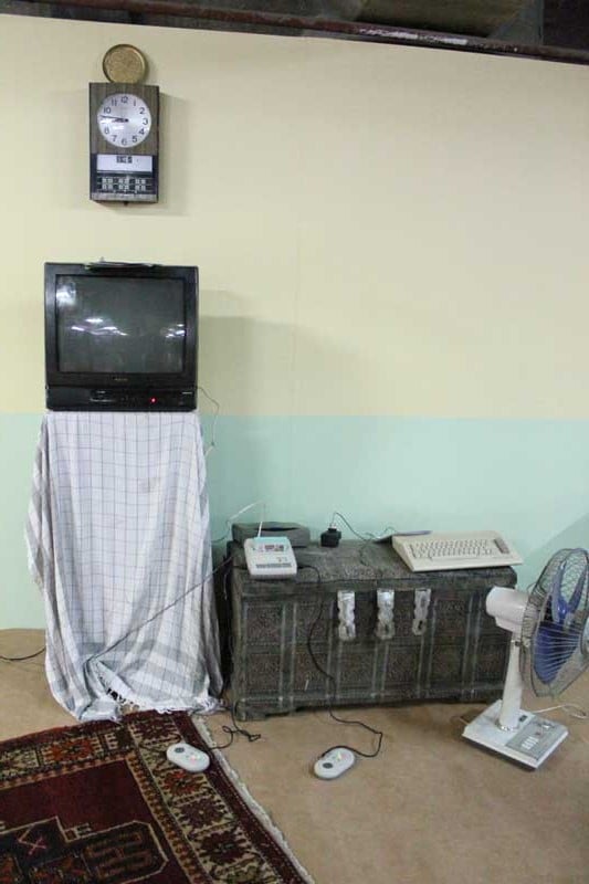 تصویر 12- به نظرم این قسمت بهترین غرفه نمایشگاه بود. اینجا به سبک خانههای قدیمی درست شده و کنسولهای Atari 2600 و NES و Commodore 64 برای بازی وجود داشتند. برای انجام بازی باید چهار زانو روی زمین نشسته و از هیجان ناب این بازیها بهره شوید. تنها چیزی که در این قسمت کم بود، یک آداپتور چسبخورده داغ و کسی بود که وسط بازی بیاید و بگوید «بزن اون ور میخوام اخبار نگاه کنم!»