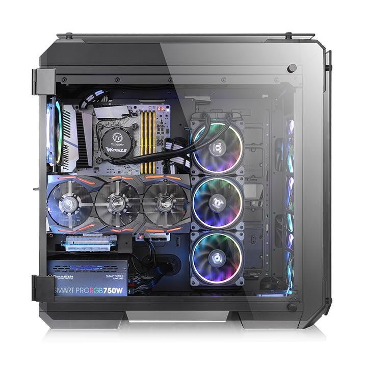 کمپانی Thermaltake در زمینه مودینگ، شخصی سازی های تخصصی و مواردی از این دست، یک نشان برتر و شناخته شده است. این شرکت به تازگی یک کیس جدید را در کلاس Full Tower، با نام View 71 Tempered Glass Edition را معرفی کرده است که از سری مجموعه های View بوده و ادامه دهنده راه این محصولات است. پنل های شیشه ای با دسترسی کامل و ماژولار، و همچنین طراحی جدید تهویه گرهای این محصول، دو عدد فن 140 میلیمتری Riing Blue از جمله موارد استفاده شده در View 71 Tempered Glass Edition است. متریال شیشه ای به ضخامت 5 میلی متر در اطراف کیس، تمامی سخت افزارهای داخلی را نمایش خواهد داد.