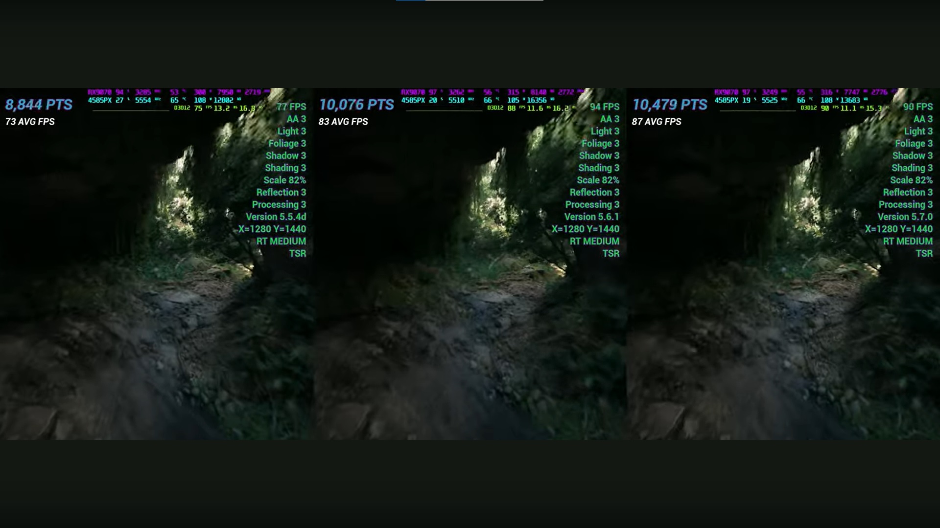 به بیان دقیقتر، ارتقا از ورژن UE 5.5.4 به UE 5.5.7، محدوده نرخ فریم را به عدد 82 افزایش میدهد و بیش از 14.2 درصد افزایش عملکرد را به همراه میآورد. علاوهبرآن، این تغییر، کیفیت تصویر (Image Quality) را در مقایسه با نسخه Unreal 5.6.4 بهبود میبخشد. بااینحال، این تغییر کلیه مشکلات کیفیت تصویر گزارش شده که پس از موتور Unreal 5.5.4 ایجاد شده بود را برطرف نمیکند.