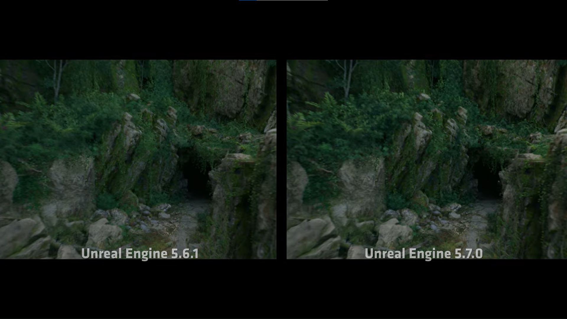 در ویدئوی پنجمارک مذکور، ارتقا از نسخه UE 5.5.4 به نسخه UE 5.6.1، میانگین FPS را از عدد 72 به 82 افزایش داد. بااینحال، این پیشرفتها با برخی از معایب بصری (مانند افزایش نویز و سوسو زدن) جبران شد. حال نوبت به نسخه کاملاً جدید Unreal Engine 5.7 میرسیم؛ نسخهای که افزایش نرخ فریم را به همراه دارد.