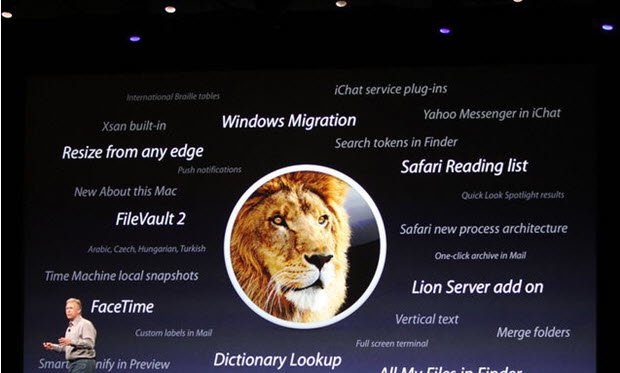 سپس phil schiller روی صحنه ظاهر شد تا پیش نمایشی از سیستم عامل جدید lion را به حضار نشان بدهد. او اینچنین بیان داشت که Lion حاوی 250 ویژگی جدید است و تعدادی از این ویژگیهای جدید شامل موارد زير است: