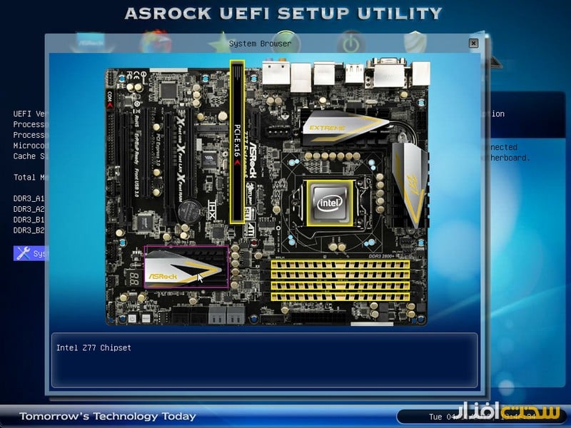 بایوس دستگاه ظاهر بهتری پیدا کرده و همان‌طور که در تصویر مشخص است، می‌توانید با کلیک روی هر بخش، اطلاعاتی درباره قطعه موردنظر پیدا کنید. تنظیمات برای اورکلاک نیز مناسب هستند. با این حال، نمی‌توان این محصول را یک مادربورد ایده‌آل برای اورکلاک دانست.