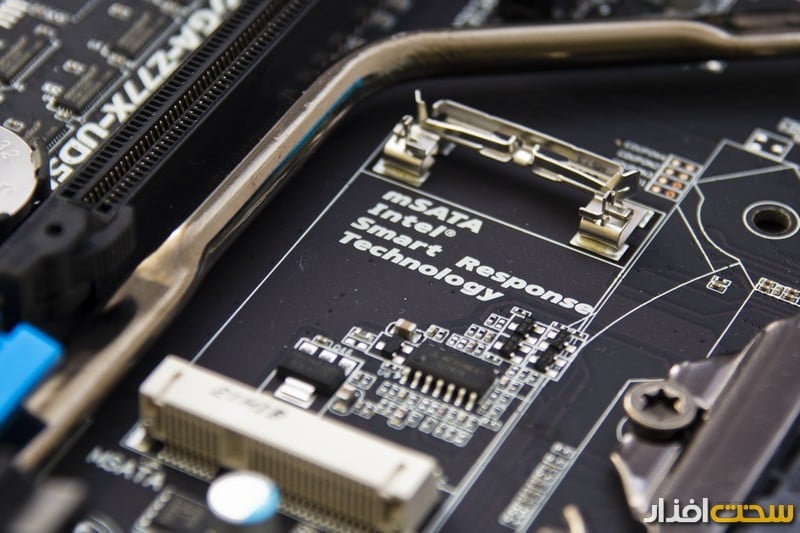 دو پورت شبکه موجود برای کسانی که حجم کاری زیادی روی شبکه دارند، مفید بوده و سه پورت USB 3.0 روی مادربورد، در مجموع ده پورت USB 3.0 را برای شما فراهم خواهندکرد! پورت mSATA نیز زیر سوکت پردازنده قرار دارد و میتوان درایوهای SSD را برای استفاده از فناوری Intel Smart Response روی آن نصب کرد.