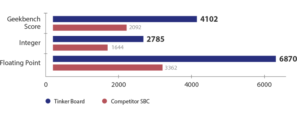 ایسوس به دلیل استفاده از سخت افزاری قدرتمند، دو برابر کارایی بیشتری را برای Tinker Board نسبت به رغیب خود یعنی Raspberry Pi فراهم آورده است. پردازنده چهار هسته ای Rockchip RK3288، تراشه گرافیکی Mali™-T764، 2 گیگابایت رم LPDDR3 با هم امکان پخش محتوای 4K را به این بورد می دهند. علاوه بر آن به دلیل داشتن دارای 4 پورت USB، پورت شبکه RJ45، رابط WiFi 802.11 b/g/n ، بلوتوث 4.0، جک استاندارد صدا با کدک RTL ALC4040 و پورت HDMI، امکان استفاده از Tinker Board بسیار آسان است. Tinker Board ایسوس با سیستم عامل های بر پایه Debian مانند نسخه های Linux و Android سازگار است و شما می توانید نسخه های بهینه شده را از وبسایت ایسوس دریافت نمایید. به منظور سادگی در استفاده و افزایش توان عملیاتی در DIY، شما می توانید با هدر های رنگی GPIO دستگاه های مورد علاقه خود را به Tinker Board بشناسانید و به کمک اتصالات MIPI هم می توانید تصویر، وبکم یا دوربین را به راحتی به Tinker Board وصل کنید. Tinker Board با ابعاد استاندارد بورد های SBC تولید شده که این امر به شما امکان می دهد خنک کننده، کیس و تجهیزات جانبی رایج و سازگار با این استاندارد را به راحتی در دسترس داشته باشید.