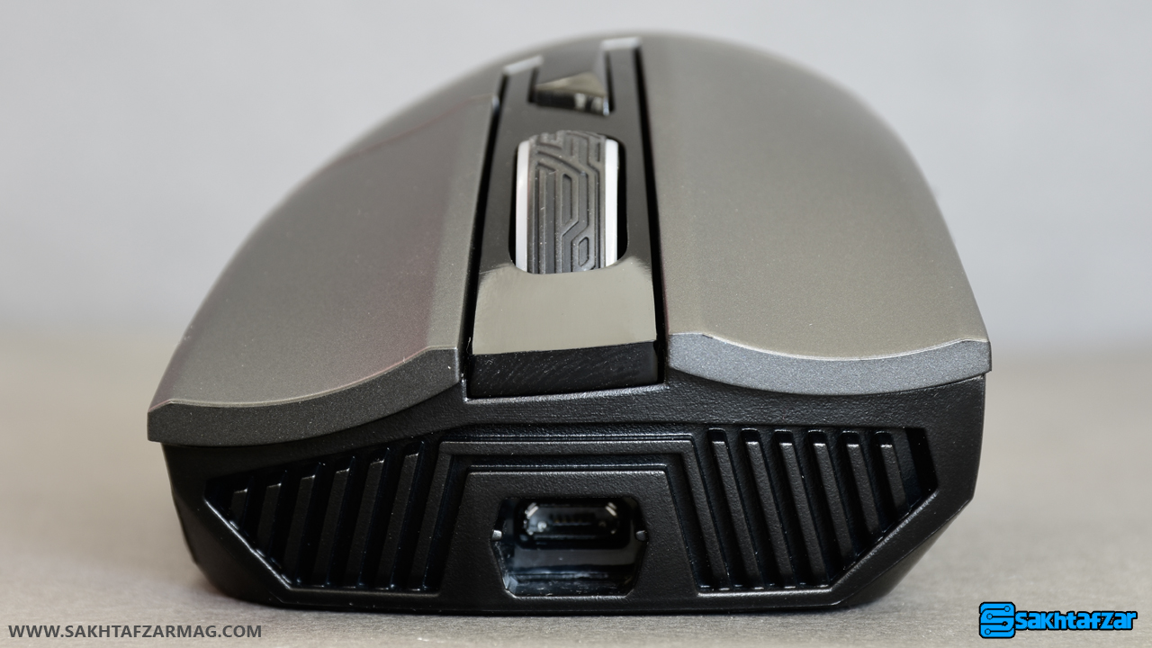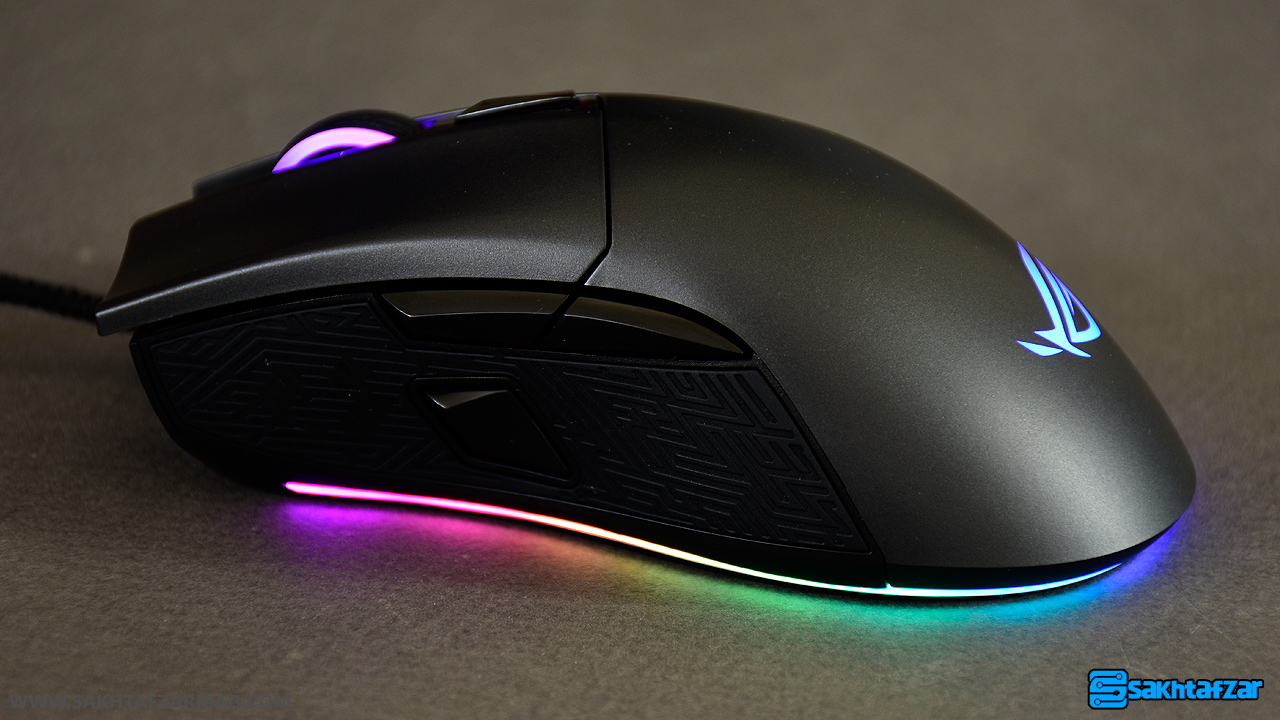 در طراحی گلادیوس 2 به بسیاری از فاکتورها توجه شده است تا حس در دست بودن ماوس در ذهن کاربر تقویت شود. از دکمه ها شروع می کنیم. دکمه هایی که برای کلیک کردن در نظر گرفته شده اند، به گفته ی ایسوس برای یک عملکرد دقیق و خوب طراحی شده اند، اما در واقعیت هم این چنین است؟ دکمه های کلیک راست و کلیک چپ را اگر به دقت مشاهده کنید متوجه می شوید که نقطه اتصال آنها به بدنه متفاوت شراحی شده است. در اعمال کلیک چپ انگشت کاربر محیط گردش بیشتری را می تواند انجام دهد اما انگشتی که با آن کلیک راست را انجام می دهید چندان موقعیت خود را برای کلیک کردن تغییر نمی دهد. به طور مثال ممکن است یک بار از قسمت بالای دکمه کلیک چپ را انجام دهید، یک بار از مرکز دکمه و یک بار هم از پایین دکمه کلیک کنید اما برای کلیک راست کردن کمتر پیش می آید که انگشت تغییر گسترده ای را در محل کلیک کردن داشته باشد. مورد دیگر عمق مناسب کلید ها است به طوری که این عمق شما را مجاب می کند تا از مکان مورد نظر اقدام به کلیک کردن کنید که همین مورد دقت در کلیک را بالا می برد. غلطک اسکرول هم از ساختار خوبی برخوردار است و برای استحکاک بیشتر با پوششی از پلاستیک نرم در گلادیوس قرار گرفته است. دکمه دیگری که در این بخش قرار گرفته است برای سویچ کردن DPI در نظر گرفته شده است. دقت DPI را می توانید با استفاده از نرم افزار ارائه شده کم یا زیاد کنید اما متاسفانه این سویچ تنها با 2 مرحله کاربر را همراهی می کند که بهتر بود حداقل این سویچ کردن با 3 یا 4 مرحله مختلف انجام می شد.