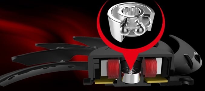 فن های مورد نظر با استفاده از 2 بلبرینگ، طول عمر بالاتر را در کنار نویز صوتی پایین تضمین می کنند. با استفاده از تکنیک های آیرودینامیکی مهندسی، هیت سینک برای تخلیه حرارت کارآمد بهینه شده است. استفاده از باله های منحنی در هیست سینک، امکان عبور هوا با صدای کمتر را فراهم می سازد؛ سپس فناوری Airflow Control هوا را به سمت هیت پایپ های خروجی هدایت می کند. نزدیک به 10 سال از معرفی فناوری Zero Frozr توسط MSI می گذرد و این تکنیک به منظور کنترل و کاهش دور فن، با کمبود بار پردازشی طراحی شده است که همچنان در کارت گرافیک های این شرکت مورد بهره برداری قرار می گیرد.